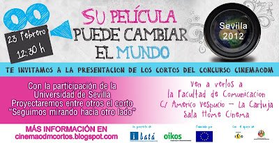 Este jueves 23 de Febrero a partir de las 12:30h, en la Facultad de Comunicación de la Universidad de Sevilla, tendrán lugar las proyecciones de los cortos finalistas en el concurso CinemaODM. Esta selección de cortometrajes, realizados por los jóvenes andaluces y portugueses,  nos hablan de la importancia de los objetivos de desarrollo del milenio.