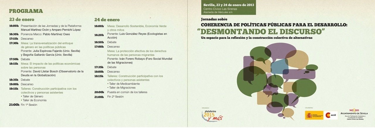 El Grupo Territorial de Andalucía de la Plataforma 2015 y más, organiza en Sevilla las siguentes Jornadas, los días 23 y 24 de enero.
