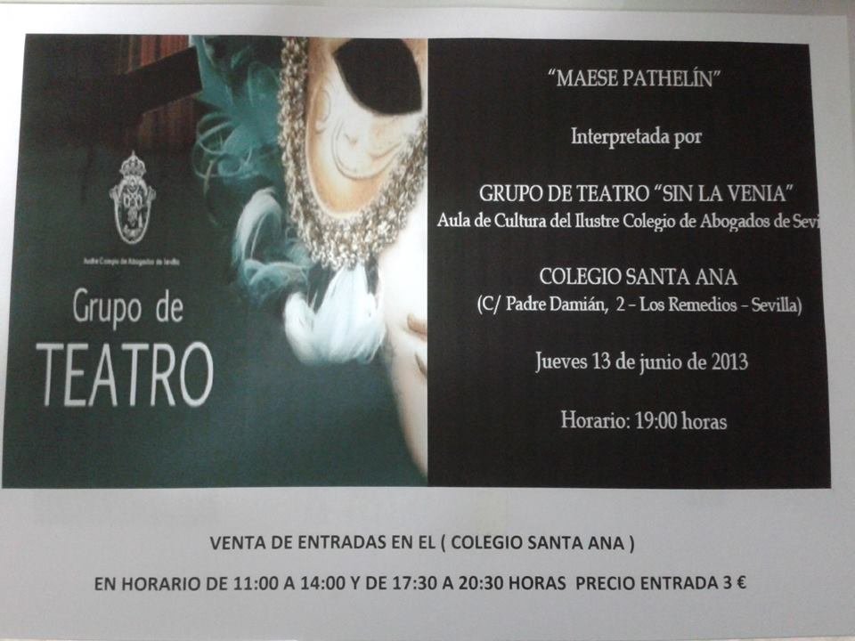 El próximo jueves  13 de junio de 2013, el Grupo de Teatro  del Ilustre Colegio de Abogados de Sevilla estrenará laobra  de teatro “MAESE PATHELÍN”, cuyos beneficios, por la venta de entradas, serán destinados a  la Fundación  Juan Bonal.