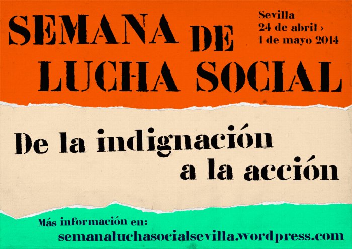 DE LA INDIGNACIÓN A LA ACCIÓN: la Semana de Lucha Social 2014 (Sevilla, 24 de abril-1 de mayo), donde participa la Asociación Sevillana de ONGD, aglutina acciones y espacios de reflexión conjunta de los movimientos sociales de la ciudad de Sevilla.