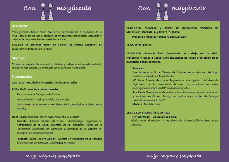 Con Motivo del Día Mundial contra la Mutilación Genital Femenina (MGF), la Asociación Mujeres Entre Mundos celebrará la Jornada #StopMGF que se engloba dentro del proyecto “Con M mayúscula. Mujer Migrante.»