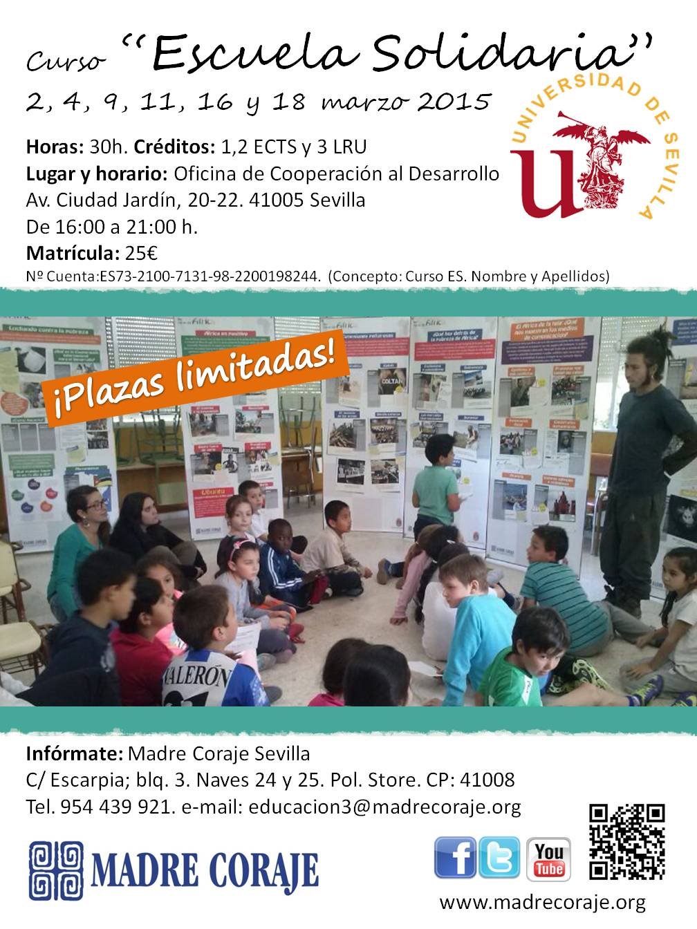 Del 2 al 18 de marzo de 2015 tendrá el Curso “Escuela Solidaria”, que un año más ha sido organizado por la ONGD Madre Coraje.