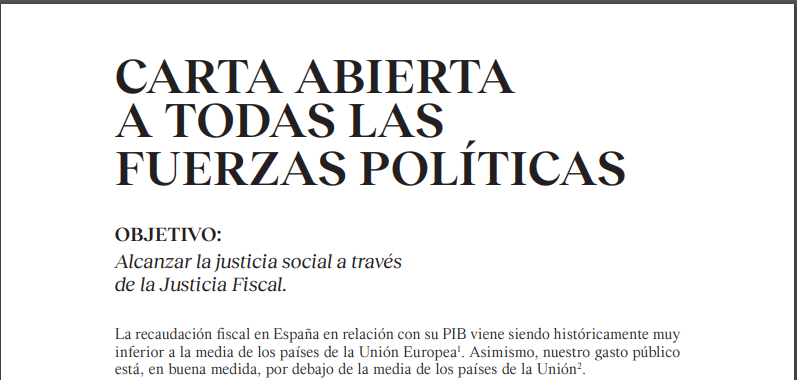 • Las organizaciones que forman parte de la Plataforma por la Justicia Fiscal han enviado a representantes de todos los partidos políticos del arco parlamentario una carta en la que reclaman que se pongan de acuerdo para llevar a cabo una reforma fiscal que sea progresiva,