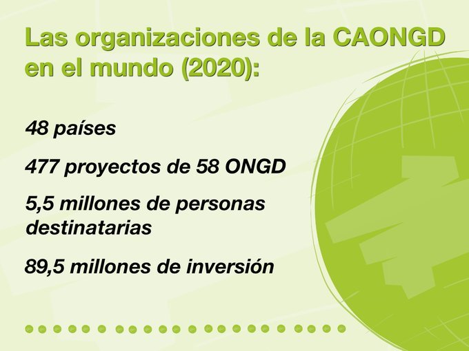 Son datos que se desprenden del Informe sobre el trabajo de las ONGD socias de la CAONGD 2020, que por primera vez se ofrece en un doble formato: publicación y web interactiva. Uno de los principales atractivos de esta web es que permite geolocalizar y ofrece información de los más de 800 proyectos (477 de cooperación internacional, 340 en Andalucía) que realizaron 62 organizaciones de esta plataforma el pasado año. La inversión global para los primeros alcanzó los 89,5 millones de euros, mientras que en Andalucía el monto llegó a 19,6 millones.