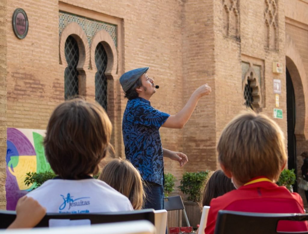 El cierre de cada una de las jornadas estuvo amenizado por el cuentero Marco Flecha (La Cháchara) con funciones de cuentos breves que narraban historias para público familiar, de una manera participativa.