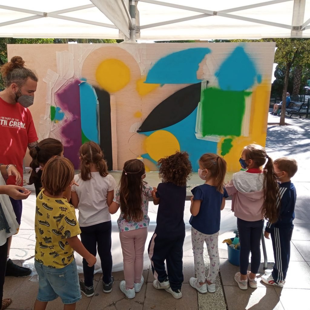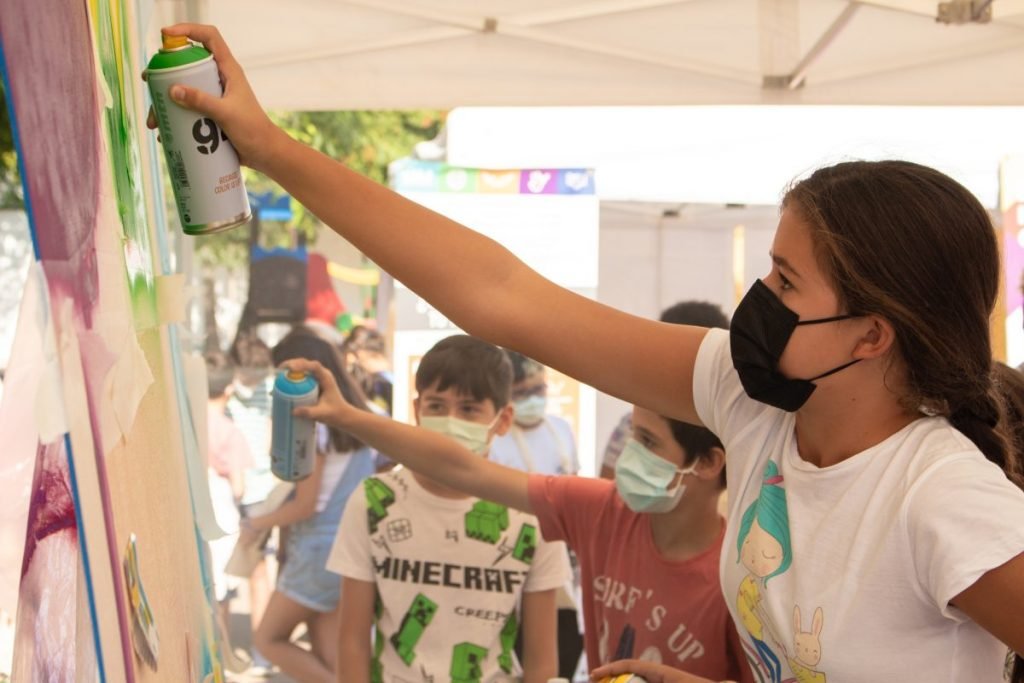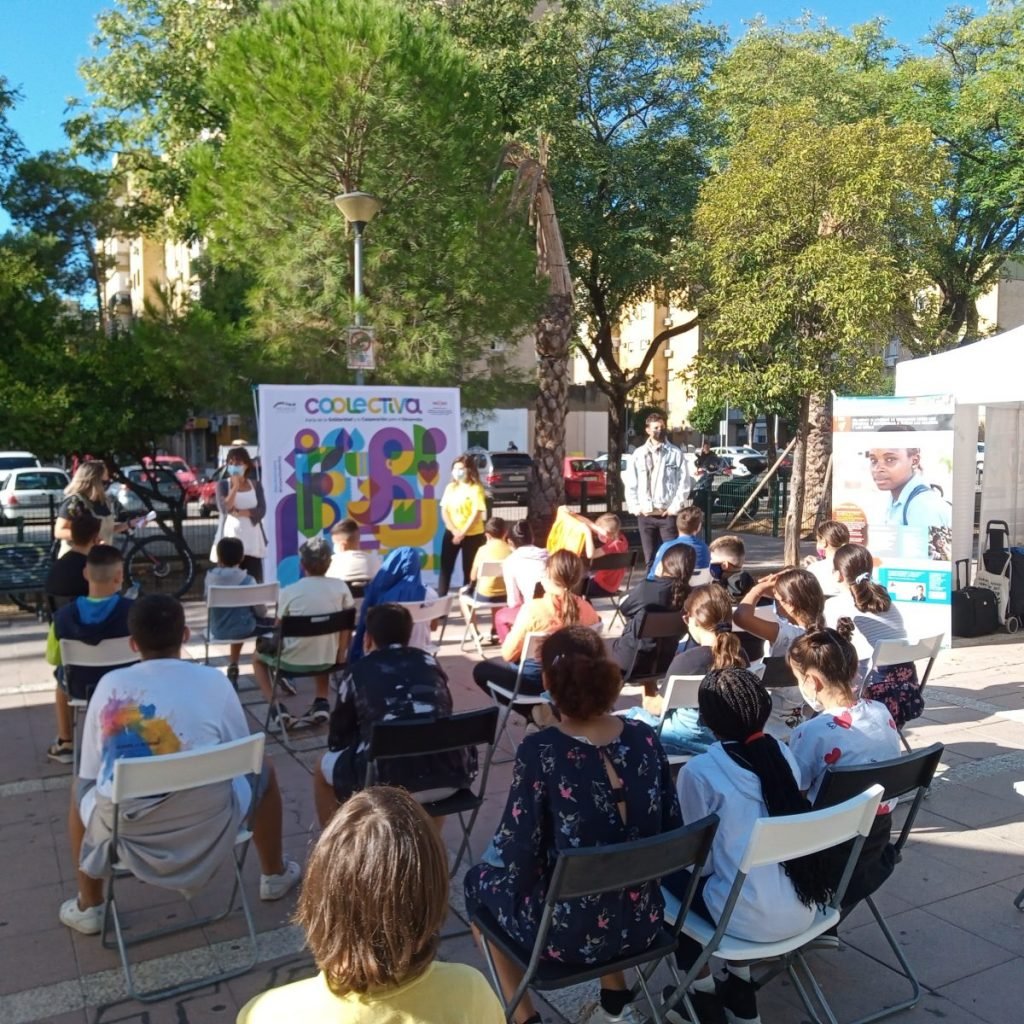 Coolectiva ha ofrecido en cada una de las 5 localizaciones (Paseo de Europa, La Buhaira, Pino Montano, Cerro Amate y la Alameda) una zona de divulgación con stands temáticos sobre Derechos Humanos y ODS, Género y Feminismos, Cuidamos el planeta o La educación en el centro; y otra zona de participación para grupos escolares durante las mañanas, mural colectivo, narración oral, taller infantil…