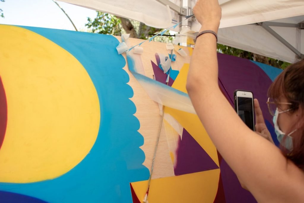 Para simbolizar la importancia de la cooperación para el desarrollo como herramienta que aporta soluciones conjuntas a los principales retos que afrontamos como humanidad, hemos invitado a las personas participantes de nuestra feria a aportar su granito de arena en nuestro mural colectivo que nos ha acompañado en todas las jornadas. El muralista Sota Pérez ha versionado la imagen del cartel de Coolectiva dividiéndola en cinco cuadrantes sobre sendos paneles de madera y ha dinamizado la actividad en los diferentes distritos, siguiendo la técnica del grafitti, buscando un resultado colectivo.