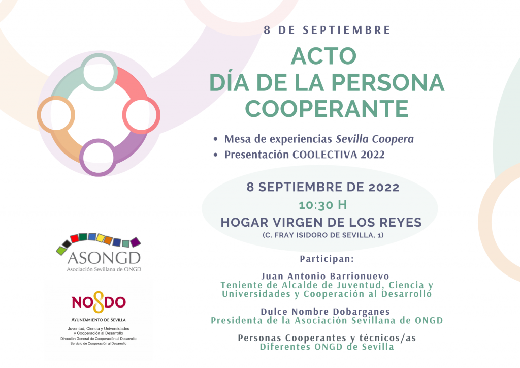 El próximo jueves, 8 de septiembre, con motivo de la celebración del Día de la Persona Cooperante, nos encontraremos en Sevilla para compartir experiencias de cooperación y presentar una nueva edición de Coolectiva, la Feria de la Solidaridad y la Cooperación para el Desarrollo.