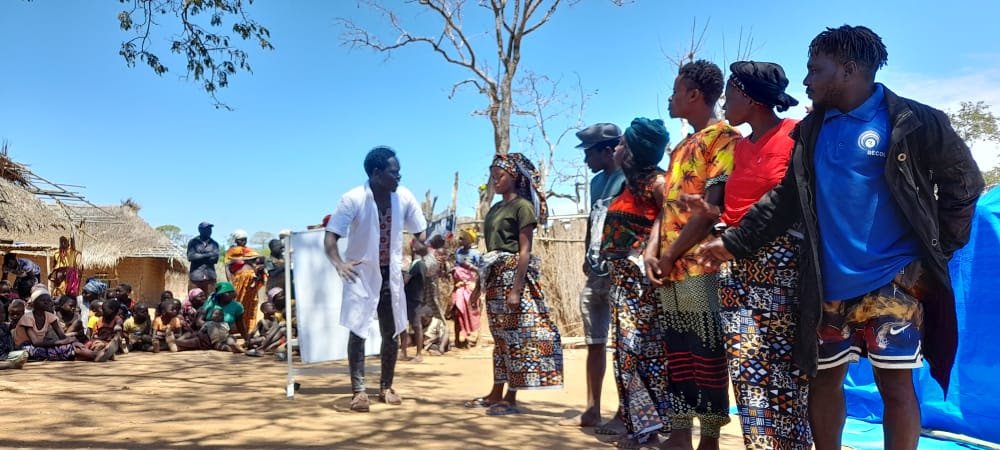 Como broche final a este trabajo de sensibilización y concienciación realizado con las mujeres y hombres que han participado en el proyecto, durante el mes de septiembre, coincidiendo con el mes en el que se conmemora el Día Internacional para la Eliminación de la Violencia contra la Mujer (25 de septiembre), se realizaron, a través de la Asociación Cultural Lipililile, formada por un grupo de jóvenes mozambiqueños, representaciones de teatro, danzas tradicionales y percusión que permitieron interactuar con la comunidad presente y mostrar que hombres y mujeres deben tener los mismos derechos en la comunidad y en el seno de la familia. Hubo una elevada participación en las tres comunidades, con un total de 488 familias, entre líderes comunitarios, beneficiarios/as del proyecto que residen en la comunidad y otros asistentes. Los líderes comunitarios tuvieron el privilegio de abrir el evento, así como explicar los objetivos del mismo. Al finalizar tuvieron la oportunidad de dirigirse a los presentes sobre la motivación del evento y demostraron estar muy agradecidos por esta actividad de sensibilización y promoción de la igualdad dentro de la Comunidad.