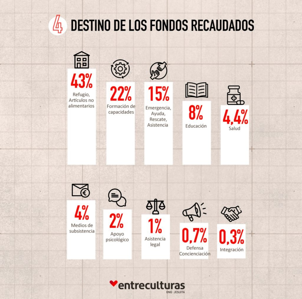Esta acogida es el primer objetivo estratégico de The One Proposal, que durante su primer año de implementación orientó el 60% de sus servicios a cumplirlo, ofreciendo refugio y ayuda de emergencia a corto plazo a personas como Marthyna. La protección es el segundo objetivo estratégico, que aglutina ayudas a medio plazo en áreas como el apoyo psicológico, la salud, la educación o el alojamiento, actividades que supusieron el 30% del programa. El 10% restante se dividió entre los objetivos de “Integrar” y “Promover”, que tienen como fin proporcionar apoyo a largo plazo a través de actividades de empleo, concienciación e integración.
