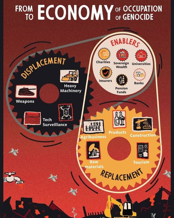 Estos actores han consolidado y expandido la lógica colonial israelí de desplazamiento y reemplazo, y esto no es accidental: es la función de una economía construida para dominar, desposeer y expulsar a los palestinos de su tierra.