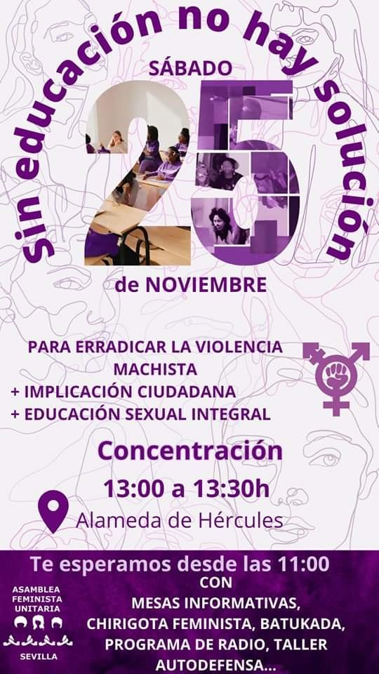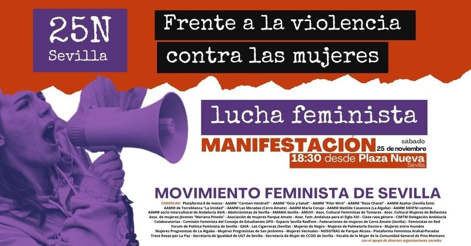 En torno al 25 de noviembre, Día Internacional de la Eliminación de la Violencia contra las Mujeres, os compartimos una recopilación de actividades, recursos y movilizaciones en la ciudad de Sevilla organizadas por diferentes colectivos y organizaciones.