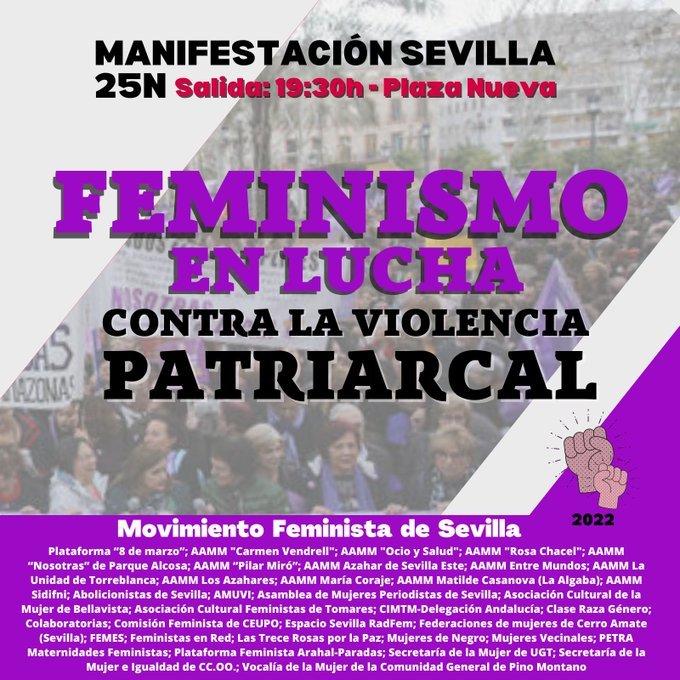 Os dejamos una selección de acciones de denuncia y reivindicación que tendrán lugar en Sevilla con motivo del 25N, Día Internacional para la Eliminación de la Violencia contra la Mujer.