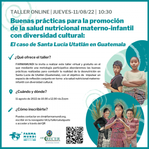 Farmamundi te invita al taller online ‘Buenas prácticas para la promoción de la salud nutricional materno-infantil con diversidad cultural: El caso de Santa Lucía Utatlán en Guatemala’.