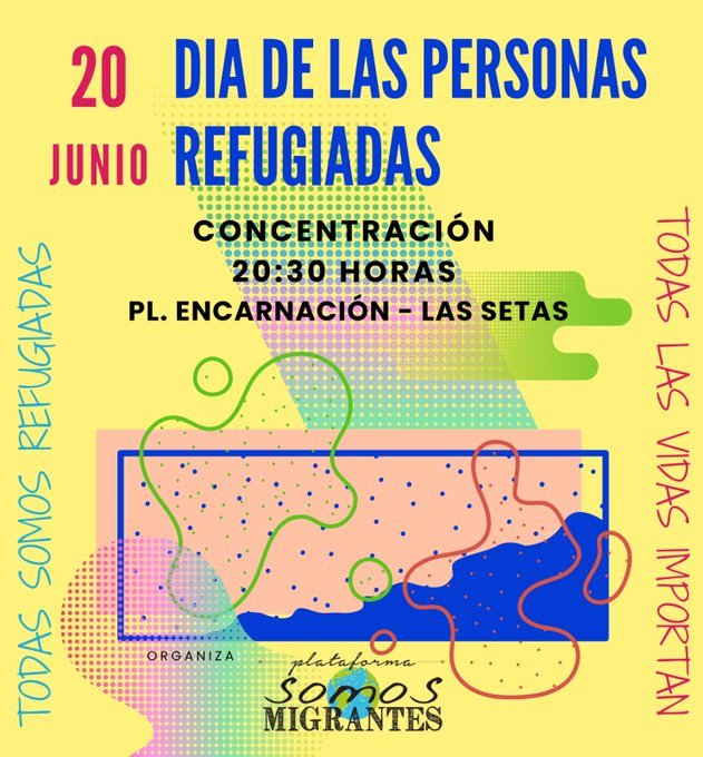 La plataforma Somos Migrantes convoca para el próximo lunes 20 de junio, con motivo del Día Mundial del Refugiada, una concentración en Plaza de la Encarnación-Las Setas para mostrar la solidaridad de la ciudadanía con las personas en esta situación y para reclamar que se apliquen las políticas de cooperación internacional.