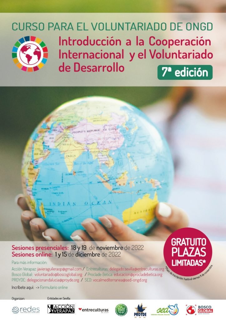 REDES en Sevilla, conformada por PROYDE, Acción Verapaz, Proclade Bética, SED, Bosco Global y Entreculturas, lanza esta 7ª edición del curso de Voluntariado Internacional en ONGD.