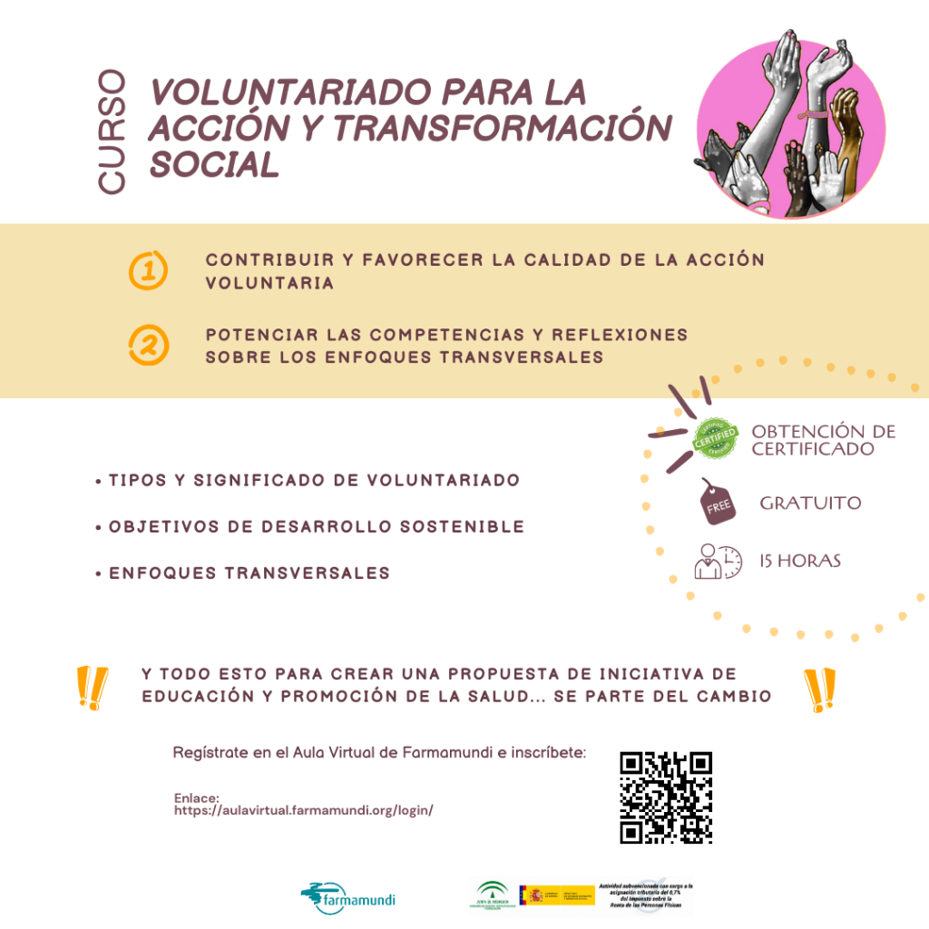 Farmamundi pone a vuestra disposición el curso virtual -totalmente gratuito y de 15h- “Voluntariado para la acción y transformación social”,