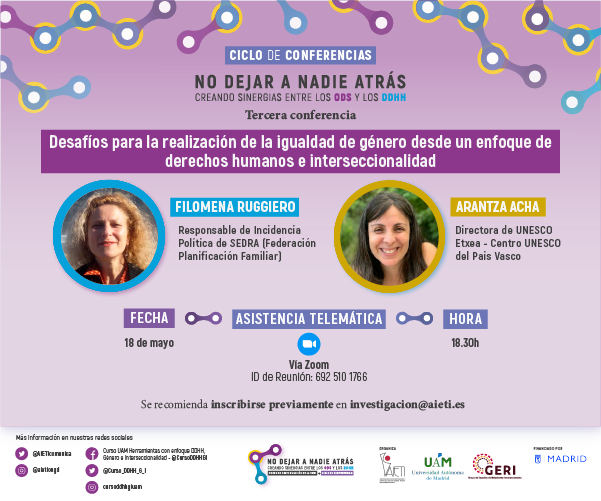 AIETI y el Grupo de Estudios Internacionales GERI-UAM organizan la 3ª conferencia “Desafíos para la realización de la igualdad de género desde un enfoque de derechos humanos e interseccionalidad» que se celebrará de forma on-line el miércoles 18 de mayo a las 18.30h