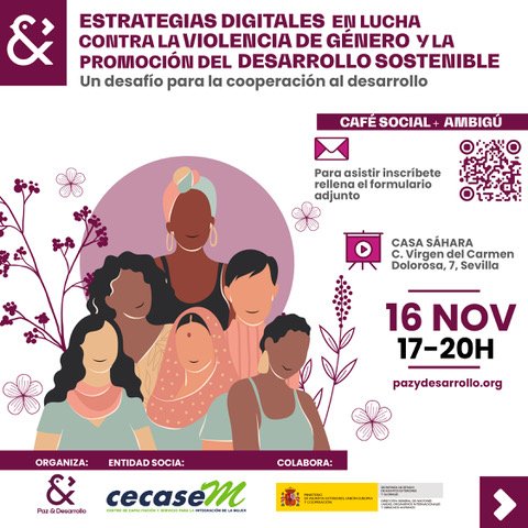 Paz y Desarrollo invita a agentes de cooperación y ciudadanía al primer Café Social celebrado en Sevilla, titulado ’Estrategias digitales en lucha contra la violencia de género y la promoción del desarrollo sostenible: un desafío para la cooperación al desarrollo”, el 16 de noviembre en Casa Sáhara, en horario de 17:00 a 19:00. Nos visitará la directora de nuestra entidad, María Elena Alconchel y desde Bolivia contaremos con el Centro de Capacitación y Servicio para la Integración de la Mujer (CECASEM), quienes nos contaran su trabajo y trayectoria en el país.