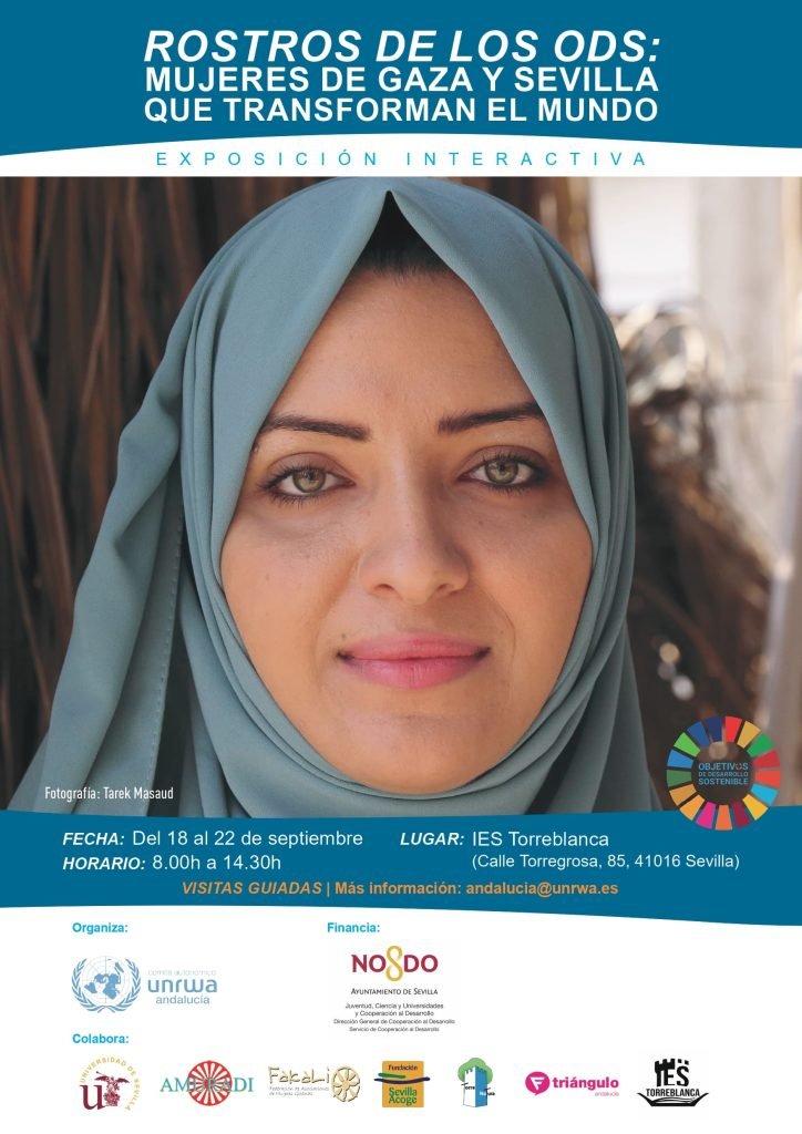 La exposición forma parte del proyecto que desarrolla UNRWA Andalucía “Rostros de los ODS. Fase II”, financiado por el Excmo. Ayuntamiento de Sevilla.