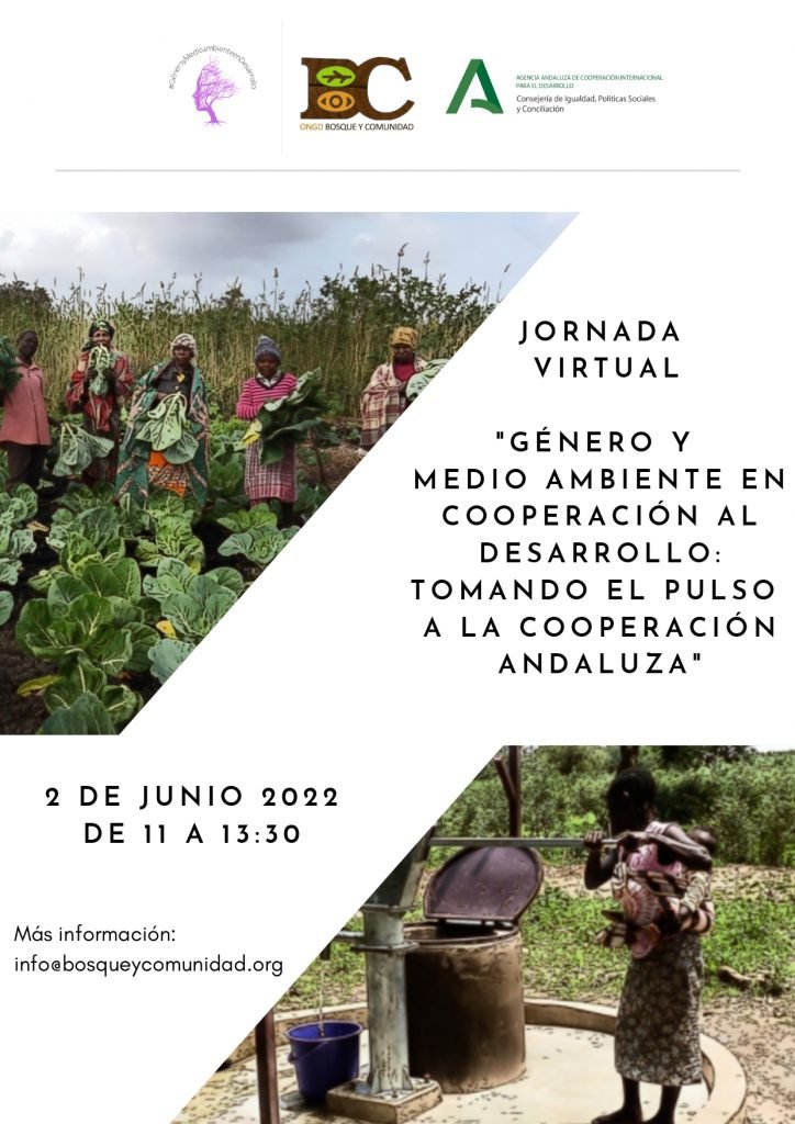 Bosque y Comunidad organiza la Jornada virtual “Género y Medio Ambiente en Cooperación al Desarrollo: tomando el pulso a la cooperación andaluza”, que se celebrará el próximo martes 2 de junio, de 11.00 a 13.30, en el marco de un proyecto financiado por la AACID.