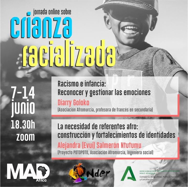 Los próximos días 7 y 14 de mayo (18.30h) MAD África propone un debate sobre la crianza racializada, hablando sobre cómo reconocer y gestionar las emociones ante situaciones de racismo y la necesidad de la infancia negra de tener referentes.
