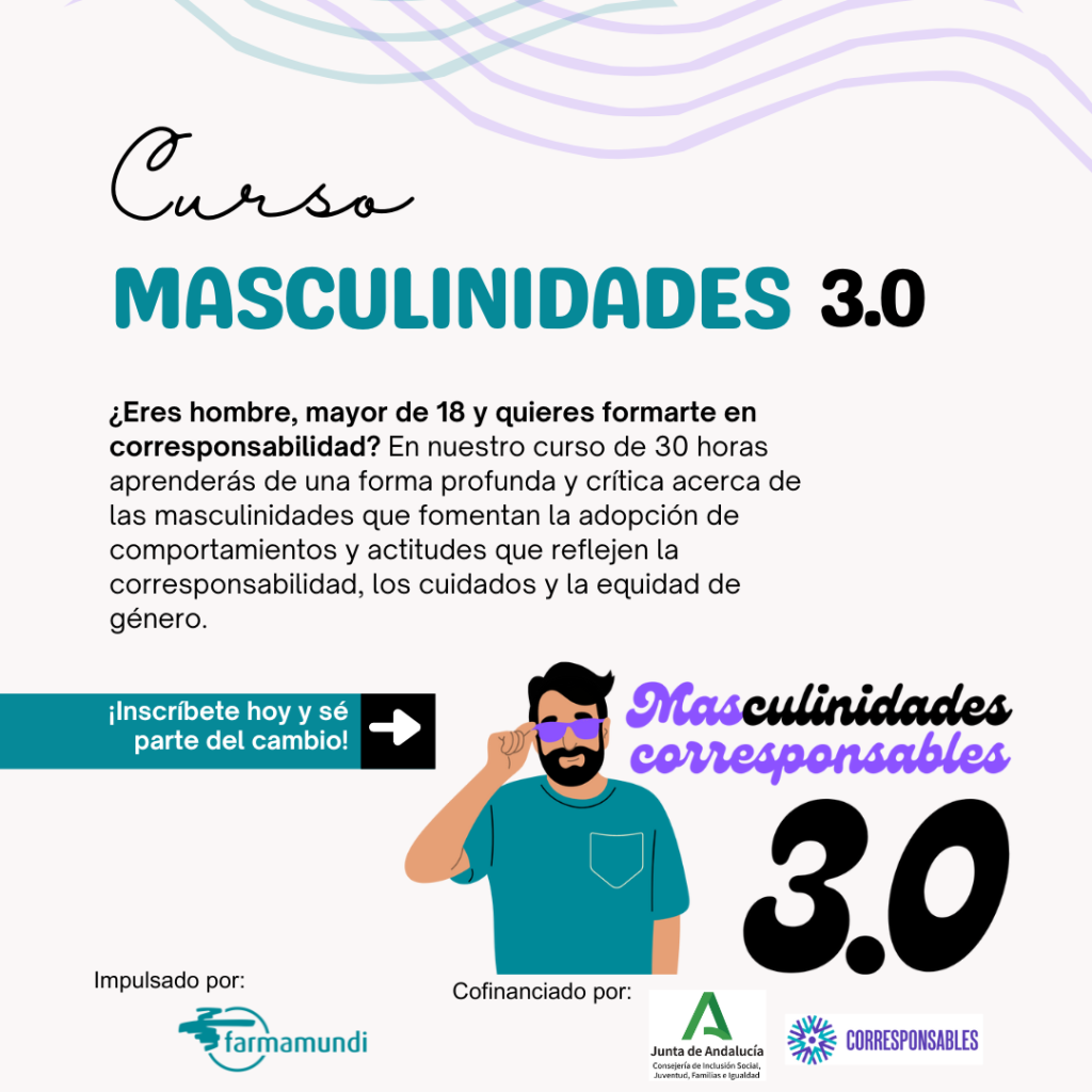 Desde Farmamundi están desarrollando el proyecto Masculinidades 3.0, que tiene como objetivo trabajar con hombres mayores de 18 años cuestiones relacionadas con el género, las masculinidades, los cuidados y la corresponsabilidad. Este proyecto es posible gracias a la financiación de la Consejería de Inclusión Social, Juventud, Familias e Igualdad de la Junta de Andalucía en el marco del programa Corresponsables del Ministerio de Igualdad.