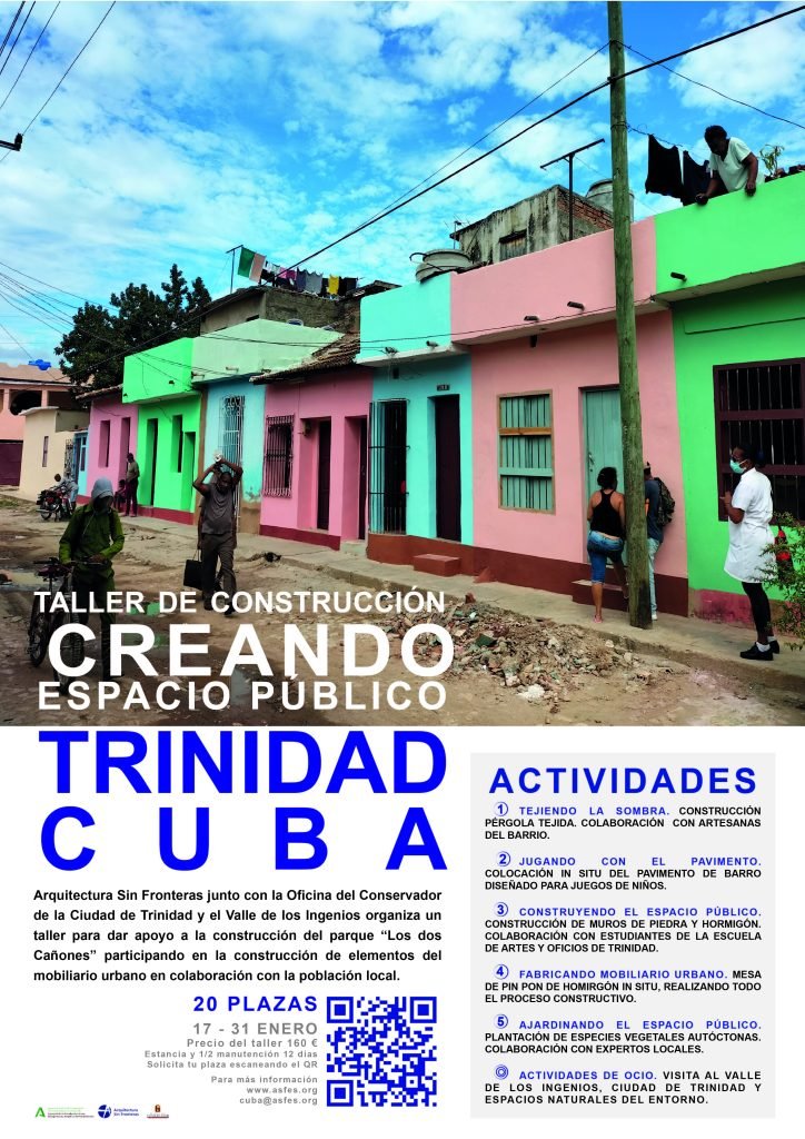 Esta actividad, organizada por Arquitectura Sin Fronteras (ASF), en estrecha colaboración con la Oficina del Conservador de la Ciudad de Trinidad y el Valle de los Ingenios (OCCTVI), forma parte de uno de los dos proyectos en marcha que actualmente tenemos en Cuba, ambos financiados por la Agencia Andaluza de Cooperación Internacional para el Desarrollo (AACID).