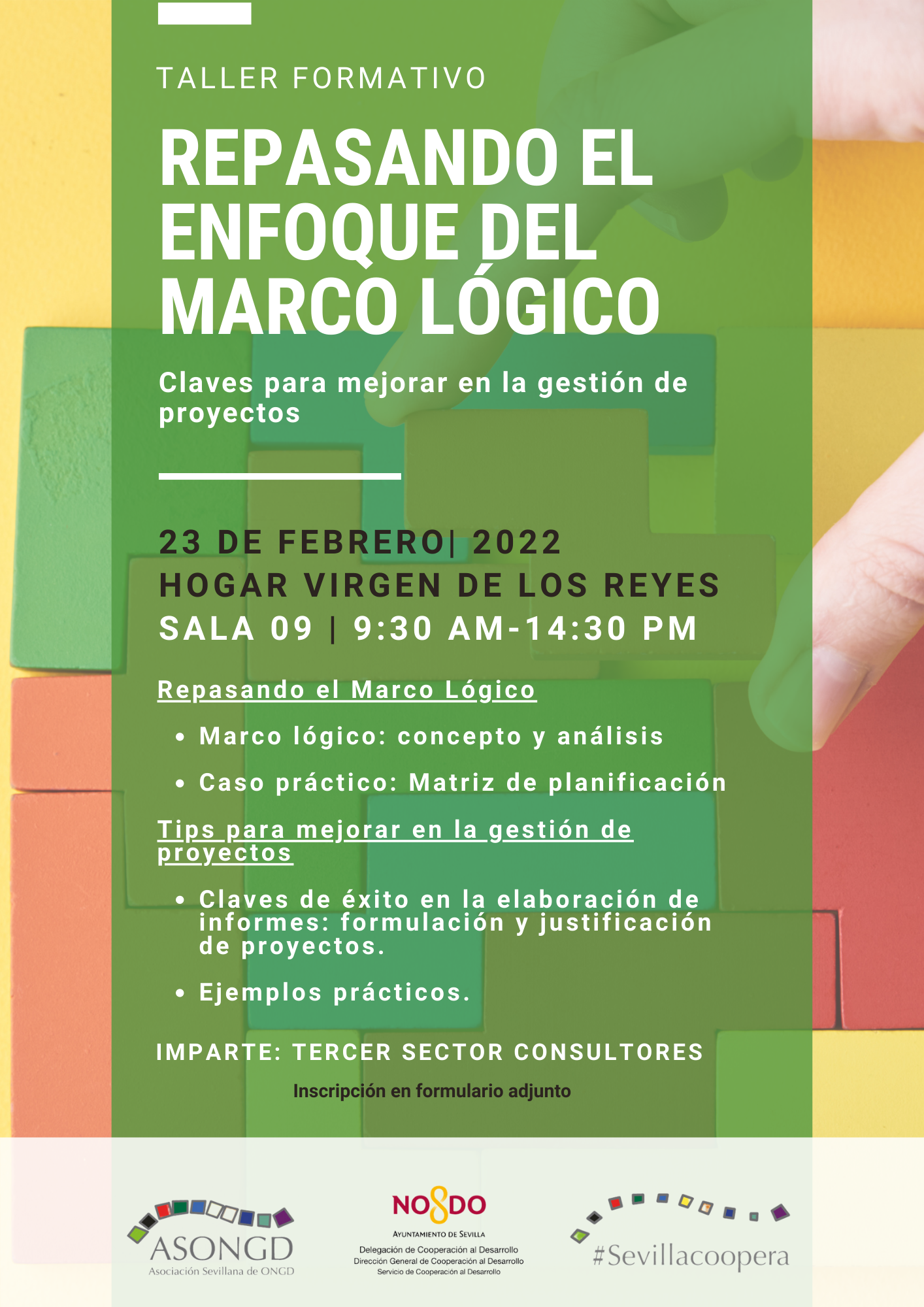Desde la Asociación Sevillana de ONGD, en el marco del convenio Sevilla Coopera desarrollado con la financiación de la Delegación de Cooperación al Desarrollo del Ayuntamiento de Sevilla, lanzamos un nuevo taller formativo centrado en el Enfoque del Marco Lógico y algunas claves para mejorar en la gestión de nuestros proyectos.