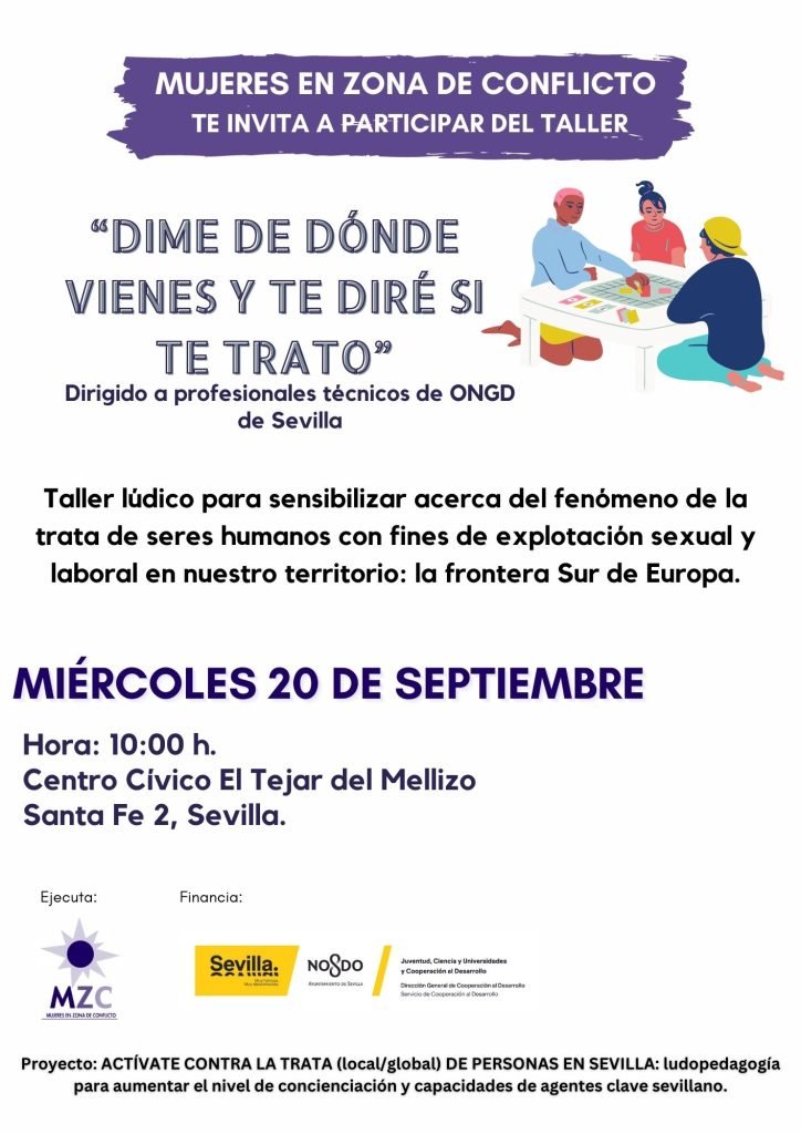MZC organiza el taller-formación Dime de dónde vienes y te diré si te trato, dirigido a personal técnico de las ONGD sevillanas y agentes del tercer sector en marco del proyecto “ACTÍVATE CONTRA LA TRATA (local/global) DE PERSONAS EN SEVILLA: ludopedagogía para aumentar el nivel de concienciación y capacidades de agentes clave sevillano, financiado por el Ayuntamiento de Sevilla.