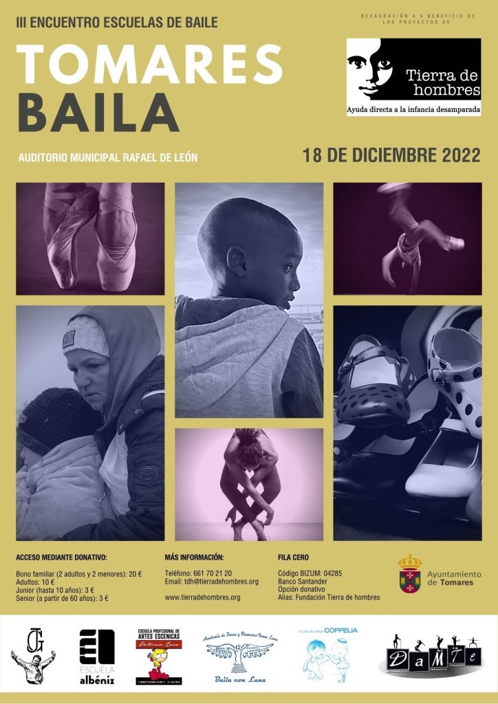 Sevilla, 12 de diciembre. El III encuentro solidario de escuelas de baile se celebrará el domingo 18 de diciembre a partir de las 11 horas en el Auditorio Municipal Rafael de León de Tomares. El evento organizado por la Fundación Tierra de hombres, cuenta con la colaboración del Ayuntamiento de Tomares y tiene como objetivo recaudar fondos para promover el desarrollo de la infancia más desfavorecida en diferentes partes del mundo como África, Ucrania o Jordania.