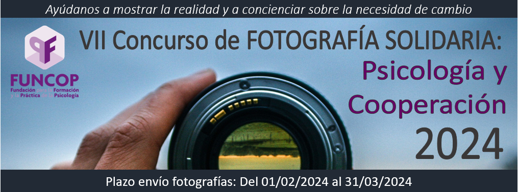 El COLEGIO OFICIAL DE PSICOLOGÍA DE ANDALUCÍA OCCIDENTAL y su FUNDACIÓN PARA LA FORMACIÓN Y LA PRÁCTICA DE LA PSICOLOGÍA (FUNCOP) organizan el “VII CONCURSO DE FOTOGRAFÍA SOLIDARIA: PSICOLOGÍA Y COOPERACIÓN” con el objetivo de dar a conocer la situación y condiciones de vida de la población de países en vías de desarrollo y hacerlas visibles a través de la fotografía para sensibilizar, generar conciencia crítica y promover la cooperación al desarrollo en nuestra sociedad.
