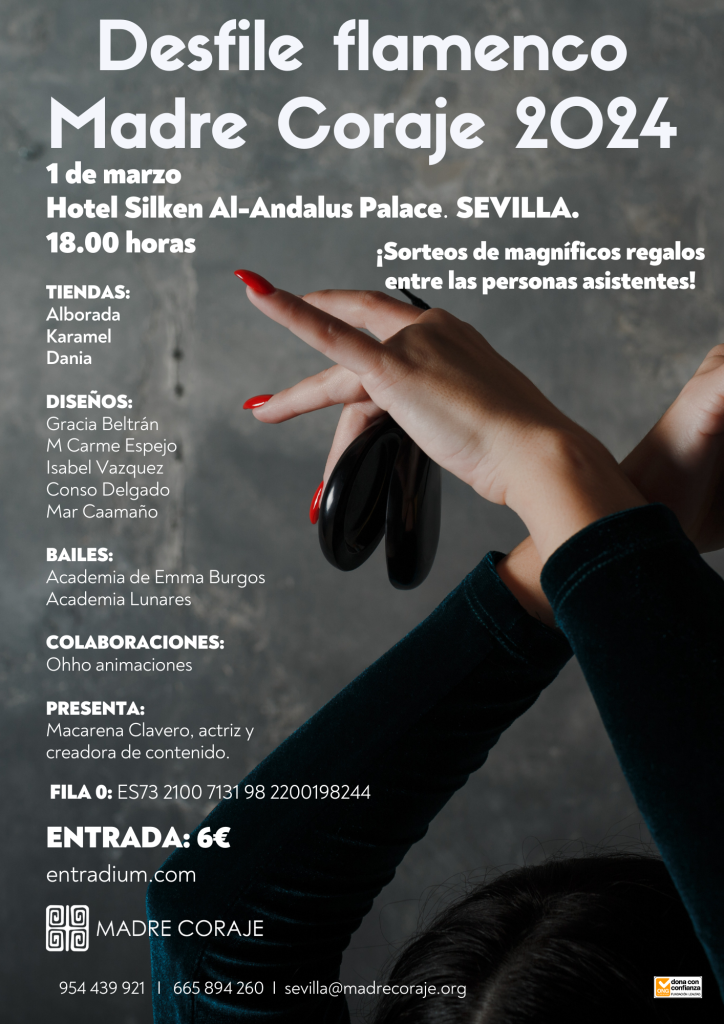 Las personas interesadas pueden adquirir su entrada por 6 euros a través de https://entradium.com/es/events/desfile-flamenco-madre-coraje-2024