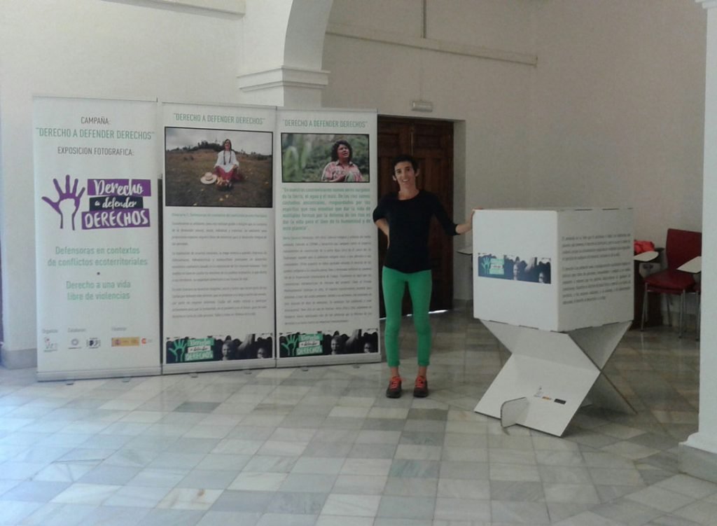 Para trasladar nuestra reivindicación, hemos realizado una exposición itinerante “Derechos Defender Derechos” que arrancó a finales de 2017 en la Biblioteca Iván de Vargas de Madrid. Desde entonces ha ido haciendo una `tourne´ por Madrid, Castilla La Mancha y en octubre de 2018, llegó a tierras sevillanas. En Sevilla ha pasado por el Hogar Social Polivalente Virgen de los Reyes y por la Oficina de Cooperación al Desarrollo, Vicerrectorado de los Servicios Sociales y Comunitarios de la Universidad de Sevilla. Se enmarca en un convenio con la AECID (en el que participan Demus, CMP Flora Tristán, CNDDHH, Entrepueblos y AEITI), en el que se llevó a cabo también la primera edición del libro Mujeres y conflictos ecoterritoriales. Impactos, estrategias, resistencias, escrito por Rocio Silva Santisteban y dedicado a la memoria de Elena, Karina Johany, Petronila, María, Lidia, Doris Adelaida, Francisca, Janett, Herminia, a la bebita Angélica y a una mujer cuyo nombre se perdió en la burocracia de las estadísticas: todas ellas murieron en conflictos sociales durante los años 2007-2017 en el Perú.