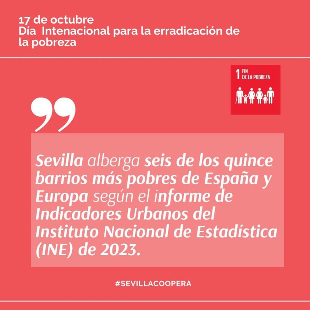 Sevilla alberga seis de los quince barrios más pobres de España y Europa según el informe de Indicadores Urbanos del Instituto Nacional de Estadística (INE) de 2023, presenta una de las desigualdades más extremas de Andalucía. La renta media por hogar en los barrios más ricos es cuatro veces mayor que en los más pobres.