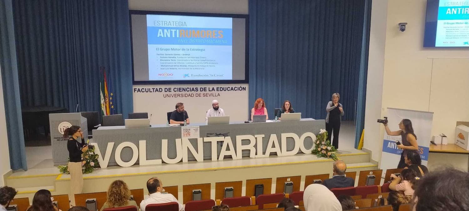 En el marco de la feria, acudimos a la presentación de la Estrategia Antirrumores en Sevilla, impulsada por el Ayuntamiento, CaixaProinfancia y la Fundación Tres Culturas. Bajo el lema “¿Rumores a mí? ¡Ahuí!”, esta iniciativa busca identificar y combatir prejuicios y estereotipos que afectan a la convivencia diaria, promoviendo una Sevilla inclusiva, diversa y libre de discriminación.