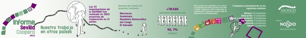 - El informe ofrece, a través de un espacio interactivo, un mapeo de más de 100 actores de cooperación en Sevilla, así como una panorámica de la contribución de las 33 ONGD de la ASONGD al cumplimiento de la Agenda 2030.